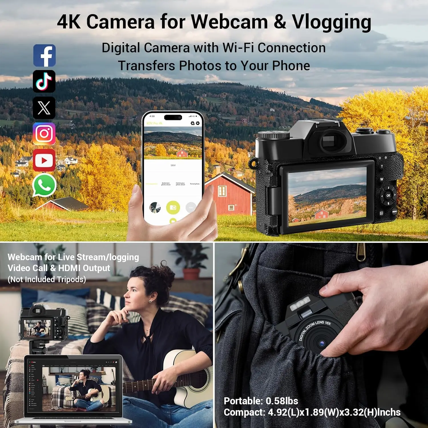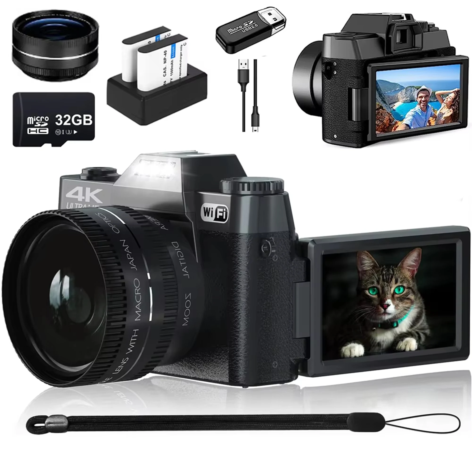 📸 48MP Digital Camera – 4K WiFi Vlogging Camcorder with Flip Screen