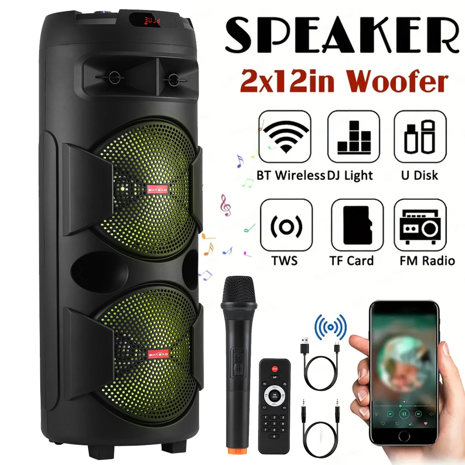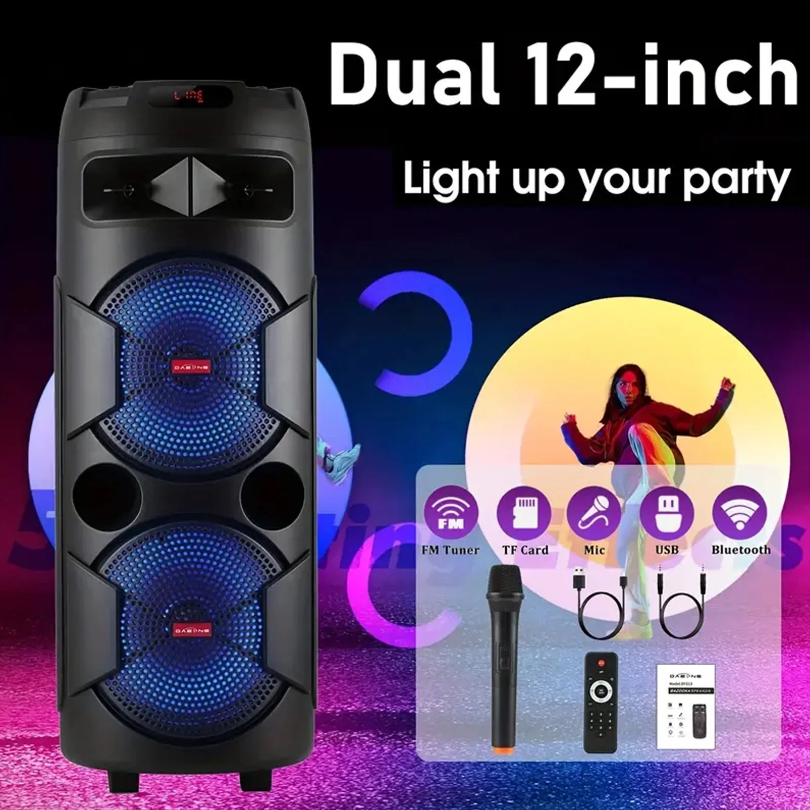 - Dual 12″ Subwoofers – Deep, thumping bass for concerts and parties.