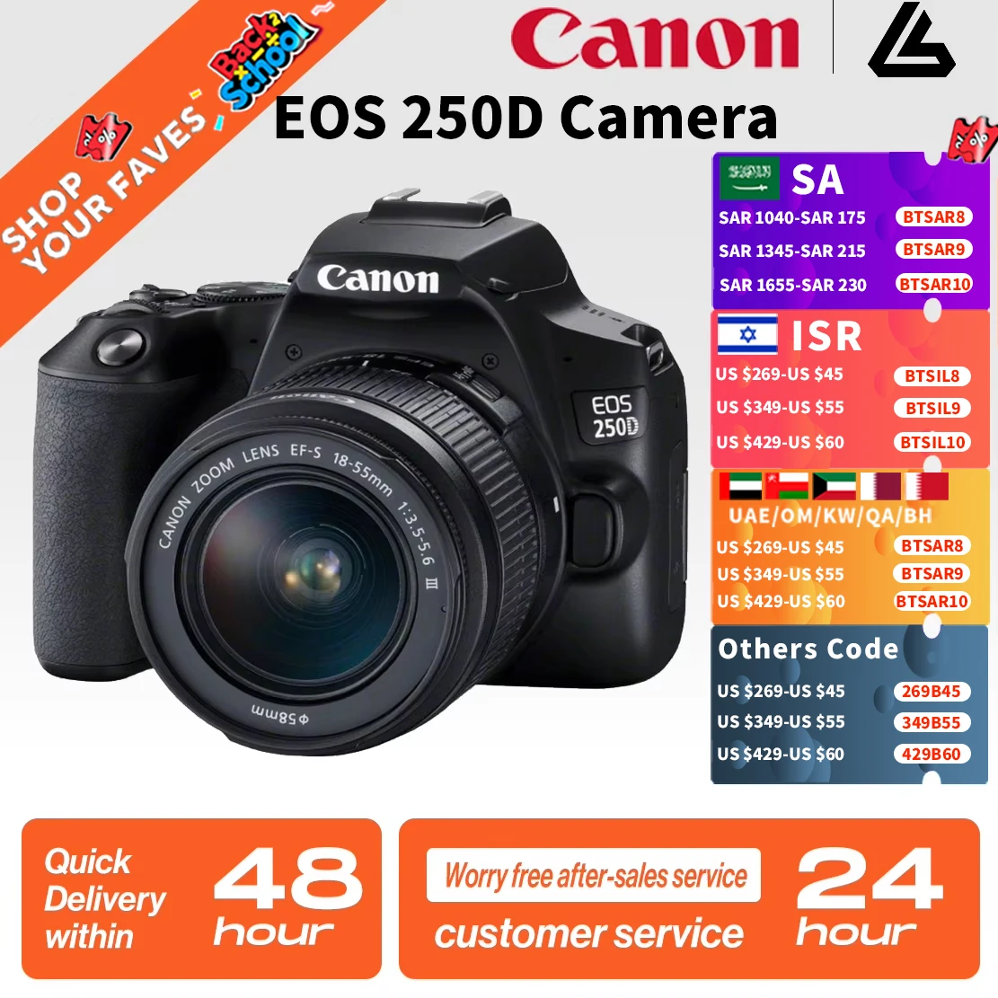 Equipped with a 24.1MP APS-C CMOS sensor and DIGIC 8 image processor, the EOS 250D delivers sharp, vibrant photos and stunning 4K UHD videos. Its powerful imaging system ensures excellent low-light performance and natural color reproduction.