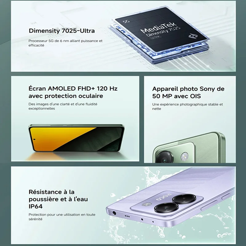 Experience powerful performance and smooth visuals with the POCO M7 Pro 5G, featuring the Dimensity 7025-Ultra Octa-Core processor and a 120Hz display. Designed for gaming, multitasking, and high-speed connectivity, this smartphone delivers speed, efficiency, and immersive viewing.
