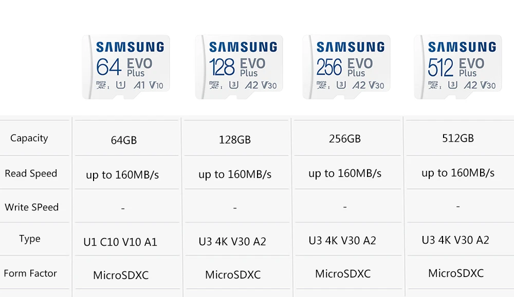 The SAMSUNG EVO Plus Micro SD/TF Card 64â512GB combines speed, capacity, and durabilityâperfect for storing media files, apps, and essential data securely.