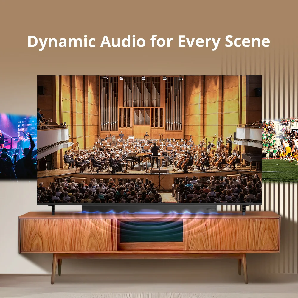 Immerse yourself in deep, clear, and balanced sound with built-in dual high-performance speakers. The dynamic sound system enhances dialogue, music, and effects for a true home-theater experience — no external speakers required.
